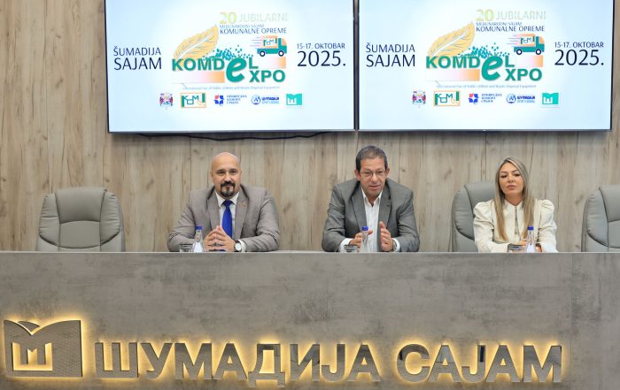 Održana konferencija za medije povodom jubilarnog 20. Međunarodnog sajma komunalne opreme – KOMDEL 2025. U Medija centru Šumadija sajma danas je održana.